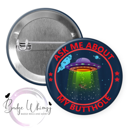 Ask me About my Butthole - Pin, Magnet or Badge Holder