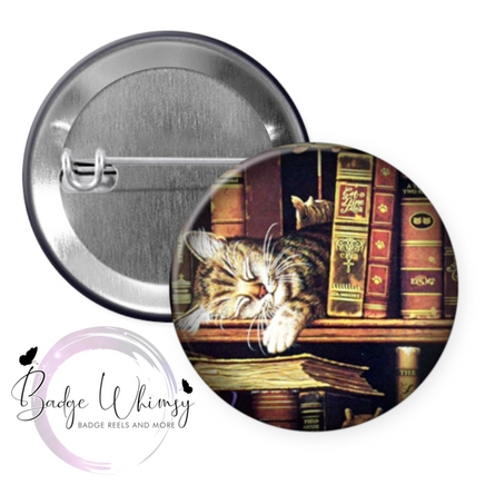 Cat/Kitty Sleeping with Books - Pin, Magnet or Badge Holder