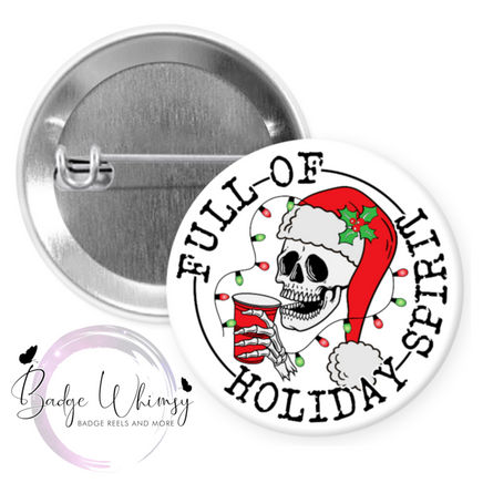 Full of Holiday Spirit - Skeleton - Pin, Magnet or Badge Holder