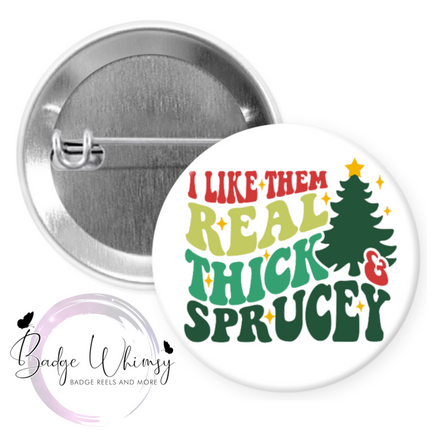 I Like Them Real Thick and Sprucey - Christmas - Pin, Magnet or Badge Holder