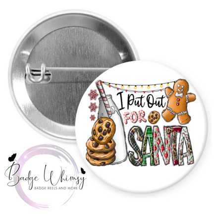 I Put Out For Santa - Funny - Christmas - Pin, Magnet or Badge Holder