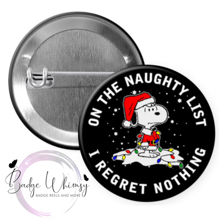 On the Naughty List - I Regret Nothing - Pin, Magnet or Badge Holder