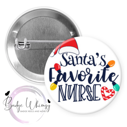 Santa's Favorite Nurse - 1.5 Inch Button - Pin, Magnet or Badge Holder