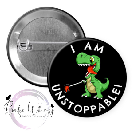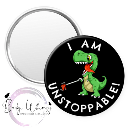 Cute T-Rex Dinosaur - I am Unstoppable! - Pin, Magnet or Badge Holder
