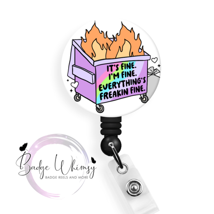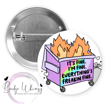 It's Fine - I'm Fine - Everything's Freakin Fine - Dumpster Fire - Pin, Magnet or Badge Holder
