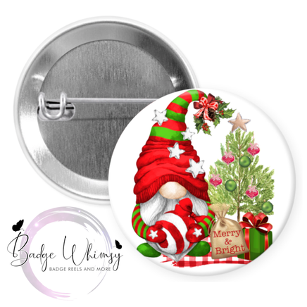 Christmas Gnome - Merry and Bright - Pin, Magnet or Badge Holder