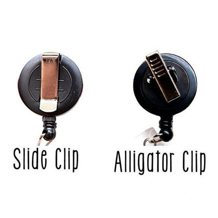 The style options for my 1.5 inch buttons are a pin, a magnet or a retractable badge reel (black slide clip or alligator swivel clip). Please note the PIN and MAGNET option are NOT retractable badge reels. See pictures for examples of each style. The button is covered in plastic Mylar (simply wipes clean).