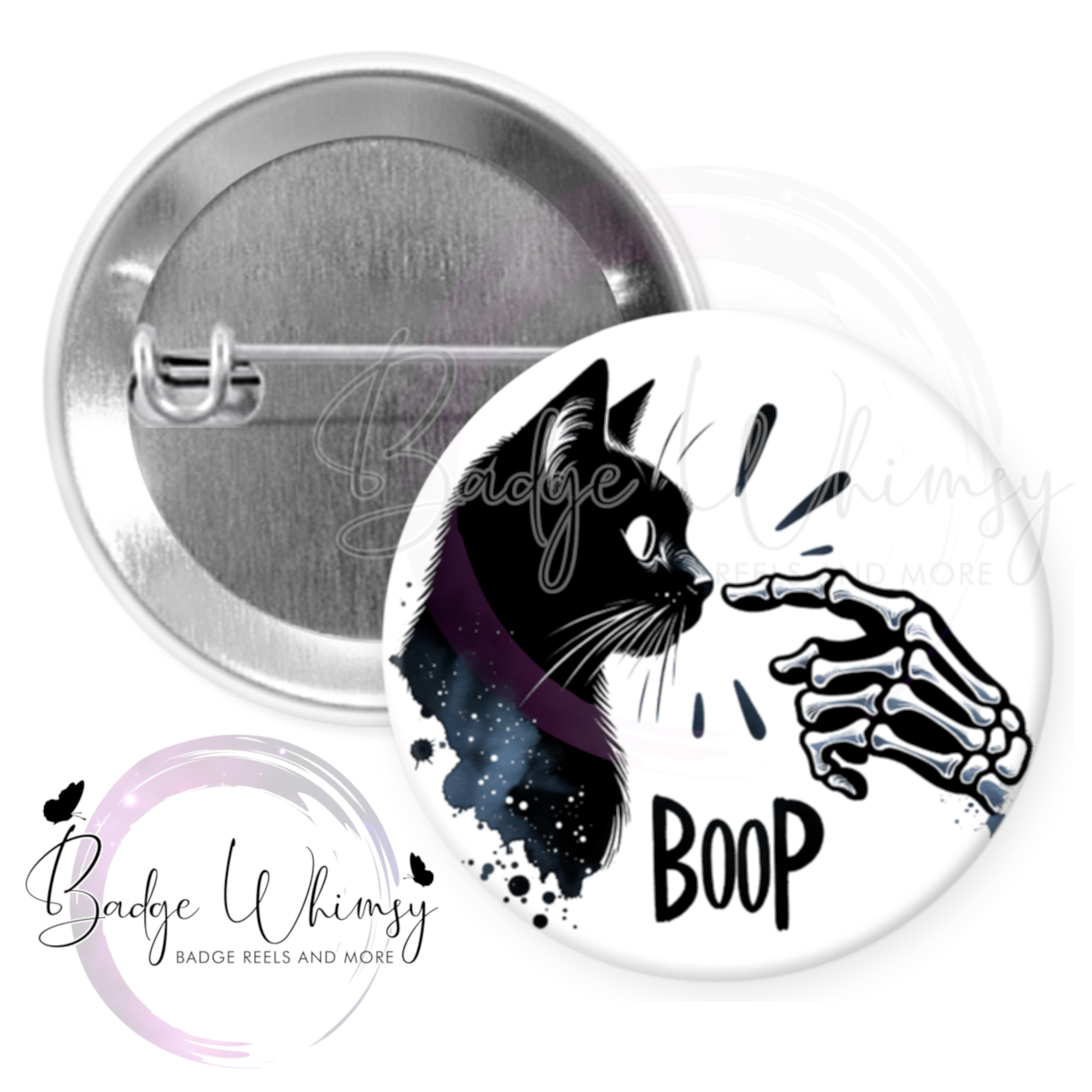 The style options for my 1.5 inch buttons are a pin, a magnet OR a retractable badge reel (black slide clip or alligator swivel clip). Please note the PIN and MAGNET option are NOT retractable badge reels nor do they attach to badge reels. See pictures for examples of each style. The button is covered in plastic Mylar (simply wipes clean).