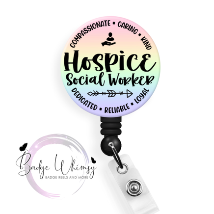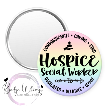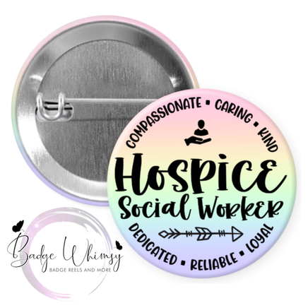 Hospice Social Worker - 2 Color Options - Blue or Rainbow - Pin, Magnet or Badge Holder (Copy)