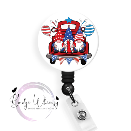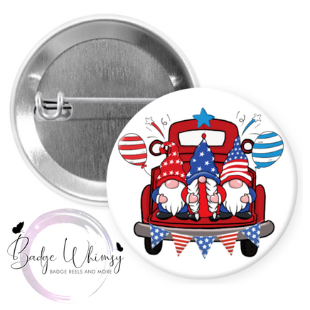 4th of July - Gnomes in Truck - Pin, Magnet or Badge Holder
