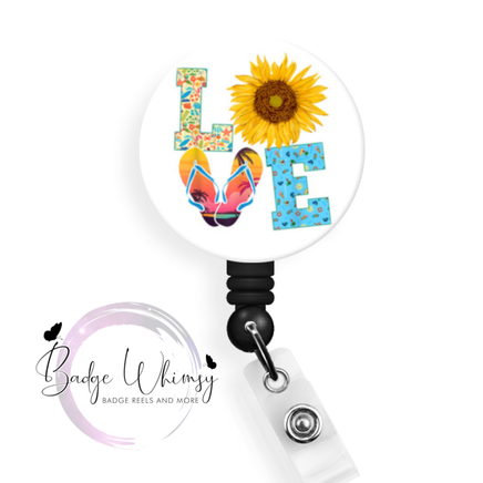 Love - Sunflower and Flip Flops - Pin, Magnet or Badge Holder